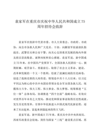 / 时令材料∣1001国庆节:20241001袁家军在重庆市庆祝中华人民共和国成立75周年招待会致辞