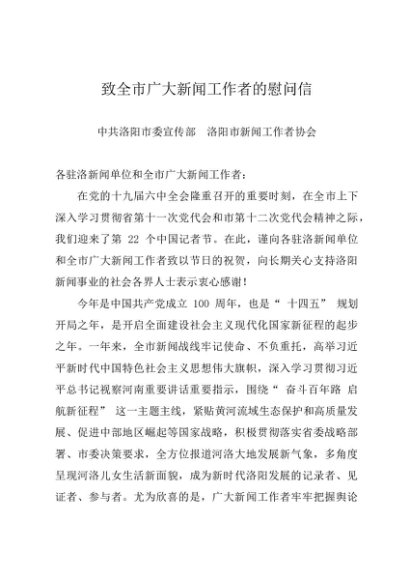 时令材料∣1108记者节:20211108致全市广大新闻工作者的慰问信——洛阳市委宣传部