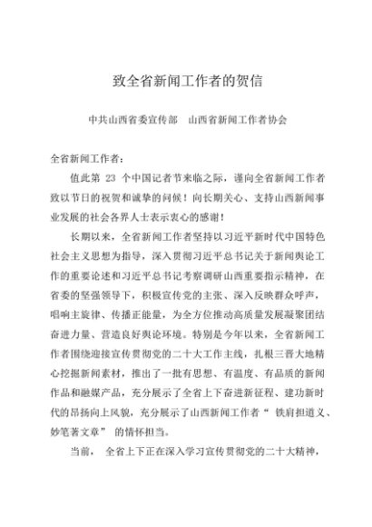 / 时令材料∣1108记者节:20221108致全省新闻工作者的贺信——山西省委宣传部