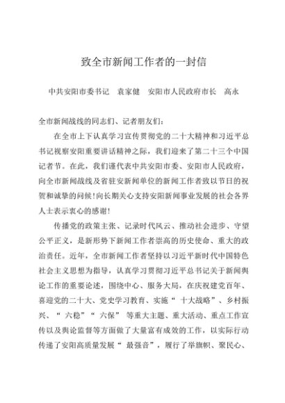 / 时令材料∣1108记者节:20221108致全市新闻工作者的一封信——安阳市委市政府