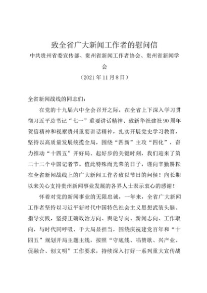 时令材料∣1108记者节:20211108致全省广大新闻工作者的慰问信——贵州省委宣传部