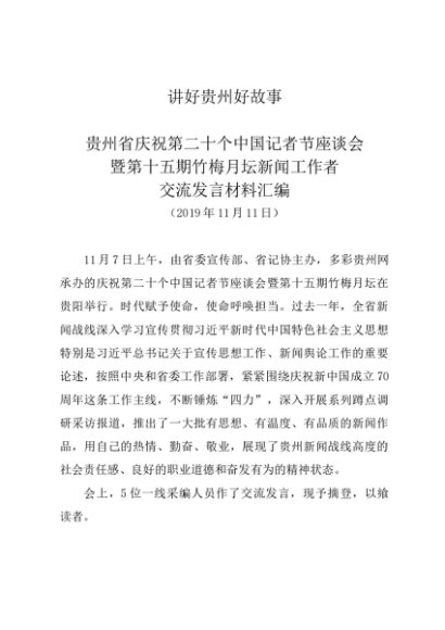 时令材料∣1108记者节:20191111贵州省庆祝第二十个中国记者节座谈会暨第十五期竹梅月坛新闻工作者交流发言材料汇编(5篇)
