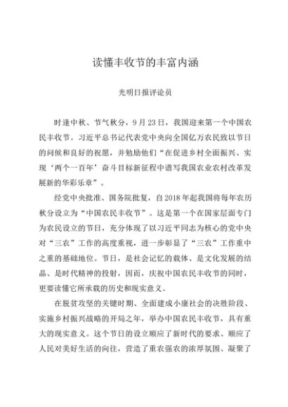 时令材料∣0923丰收节:20180923读懂丰收节的丰富内涵——光明日报评论员