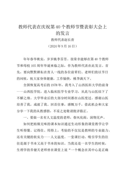 / 时令材料∣0910教师节:20240910教师代表在庆祝第40个教师节暨表彰大会上的发言