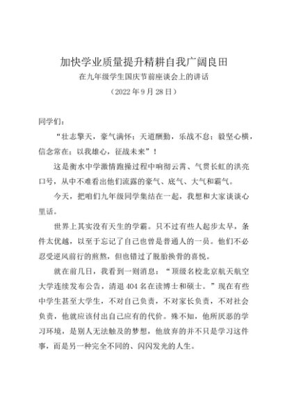 时令材料∣1001国庆节:20220928在九年级学生国庆节前座谈会上的讲话