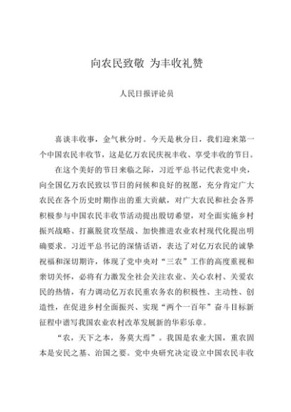时令材料∣0923丰收节:20180923向农民致敬 为丰收礼赞——人民日报评论员