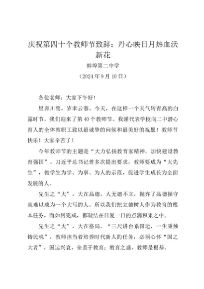 / 时令材料∣0910教师节:20240910庆祝第四十个教师节致辞:丹心映日月热血沃新花——蚌埠第二中学
