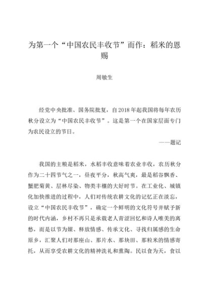 时令材料∣0923丰收节:20180923为第一个“中国农民丰收节”而作:稻米的恩赐——周敏生