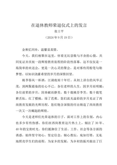 时令材料∣0910教师节:20240910在退休教师荣退仪式上的发言