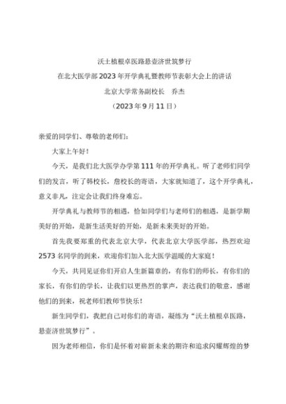 时令材料∣0910教师节:20230912在北大医学部2023年开学典礼暨教师节表彰大会上的讲话——北京大学常务副校长 乔杰