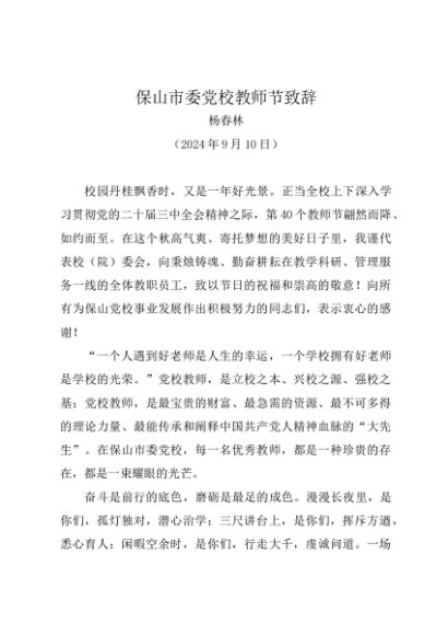 时令材料∣0910教师节:20240910保山市委党校教师节致辞——杨春林