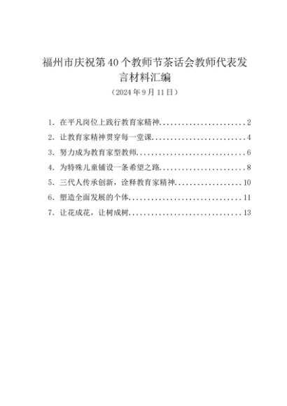 / 时令材料∣0910教师节:20240910福州市庆祝第40个教师节茶话会教师代表发言材料汇编