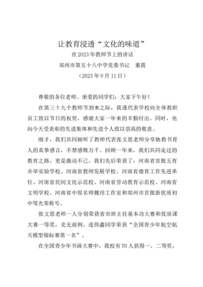 / 时令材料∣0910教师节:20230911在2023年教师节上的讲话——郑州市第五十八中学党委书记