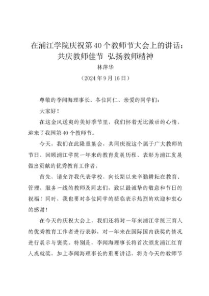 / 时令材料∣0910教师节:20240910在浦江学院庆祝第40个教师节大会上的讲话:共庆教师佳节 弘扬教师精神