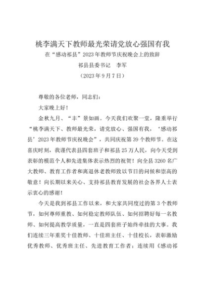 / 时令材料∣0910教师节:20230907在“感动祁县”2023年教师节庆祝晚会上的致辞