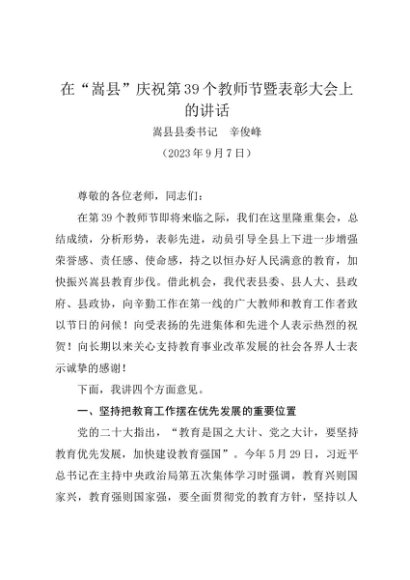 / 时令材料∣0910教师节:20230907在“嵩县”庆祝第39个教师节暨表彰大会上的讲话