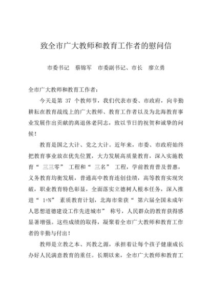 时令材料∣0910教师节:20210910致全市广大教师和教育工作者的慰问信——北海市委市政府