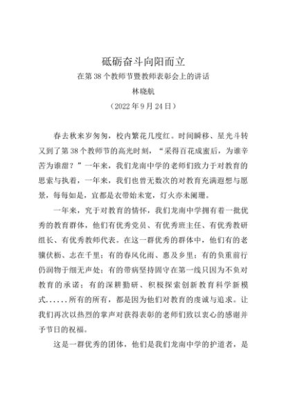 时令材料∣0910教师节:20220924在第38个教师节暨教师表彰会上的讲话——林晓航