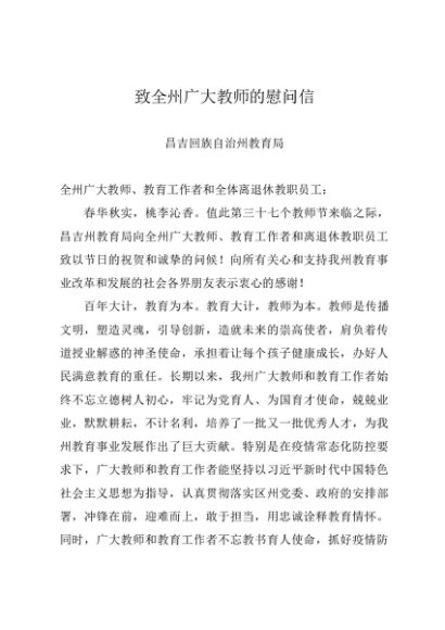 / 时令材料∣0910教师节:20210910致全州广大教师的慰问信——昌吉回族自治州教育局