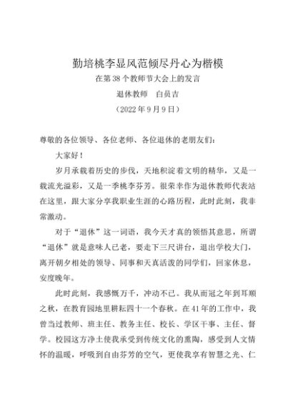 时令材料∣0910教师节:20220909在第38个教师节大会上的发言——退休教师 白员吉