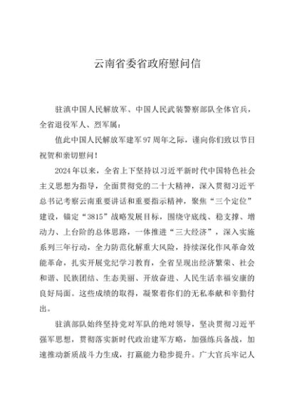 / 时令材料∣0801建军节:20240801云南省委省政府慰问信