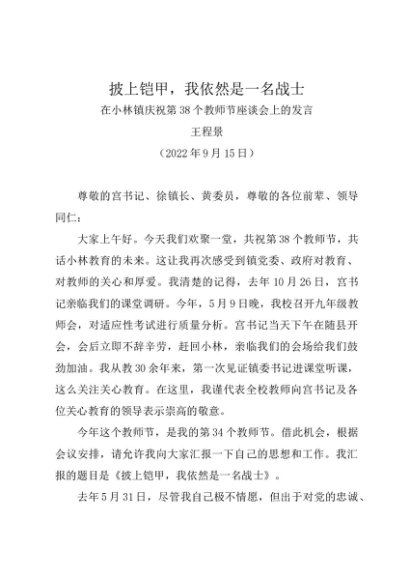 / 时令材料∣0910教师节:20220915披上铠甲,我依然是一名战士——在小林镇庆祝第38个教师节座谈会上的发言