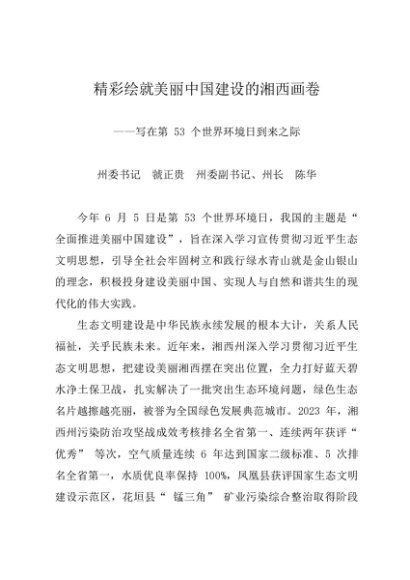 时令材料∣0605环境日:20240605精彩绘就美丽中国建设的湘西画卷——写在第 53 个世界环境日到来之际