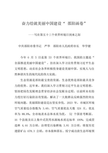 时令材料∣0605环境日:20240605奋力绘就美丽中国建设邵阳画卷——写在第五十三个世界环境日到来之际