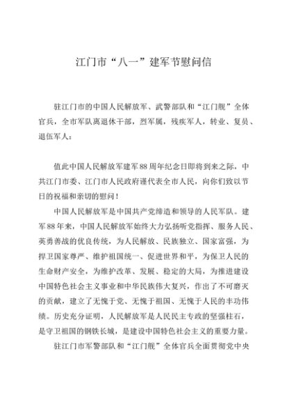 / 时令材料∣0801建军节:20150730江门市“八一”建军节慰问信