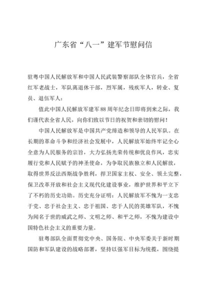 / 时令材料∣0801建军节:20150719广东省“八一”建军节慰问信