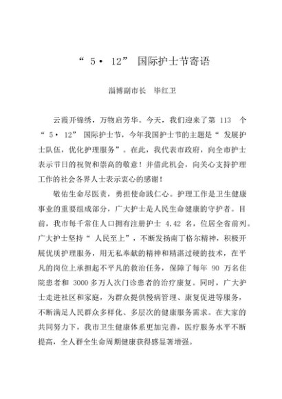 / 时令材料∣0512护士节:20240512“ 5· 12” 国际护士节寄语——淄博副市长