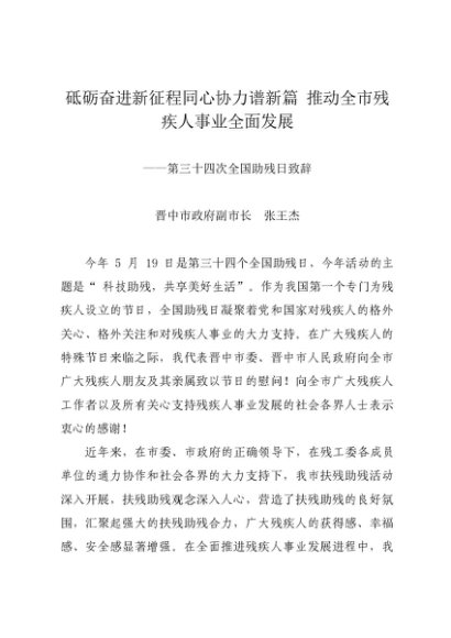 时令材料∣0519全国助残日:20240519第三十四次全国助残日致辞——晋中市政府副市长