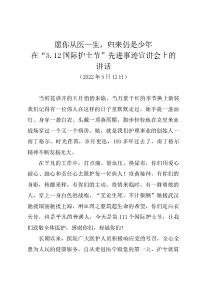/ 时令材料∣0512护士节:20220512在“5.12国际护士节”先进事迹宣讲会上的讲话