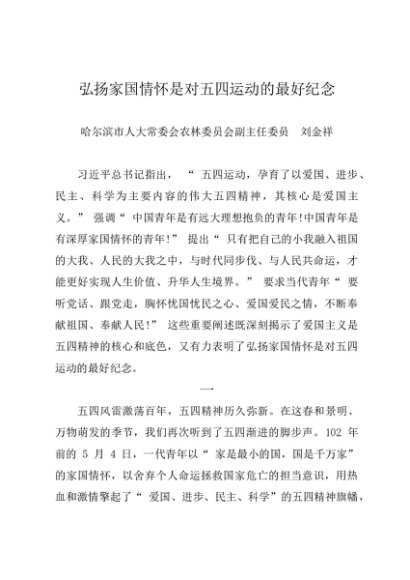 / 时令材料∣0504青年节:20210506弘扬家国情怀是对五四运动的最好纪念——哈尔滨市人大 刘金祥