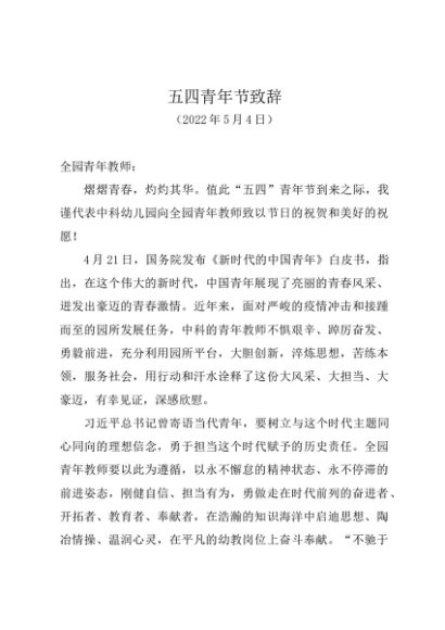 时令材料∣0504青年节:20220504五四青年节致辞——中科幼儿园