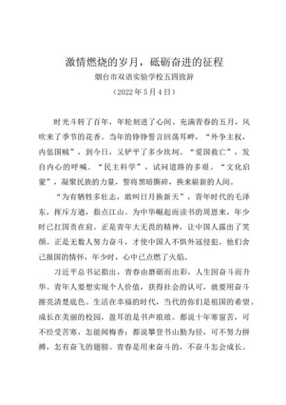 时令材料∣0504青年节:20220504烟台市双语实验学校五四致辞