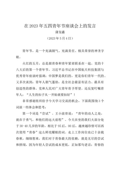 / 时令材料∣0504青年节:20230504在2023年五四青年节座谈会上的发言——蒲玺鑫