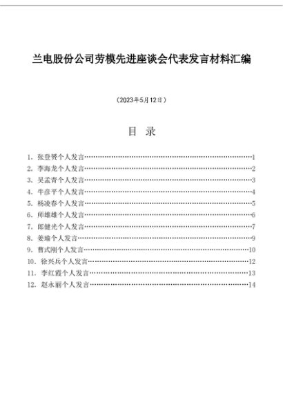 时令材料∣0501劳动节:!20230501劳模先进座谈会代表发言材料汇编(兰电股份公司12篇)