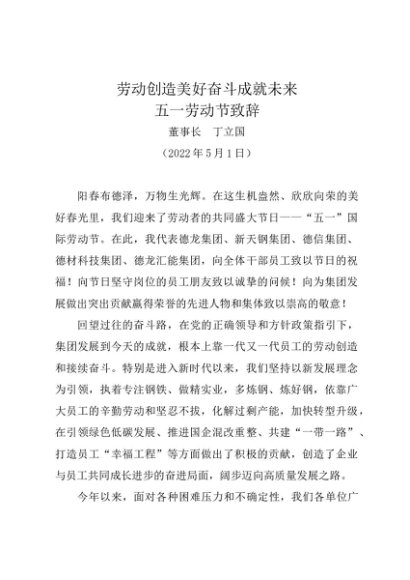 时令材料∣0501劳动节:20220501五一劳动节致辞——集团董事长丁立国