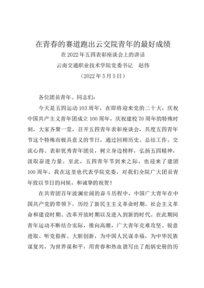 时令材料∣0504青年节:20220505在2022年五四表彰座谈会上的讲话——云南交通职业技术学院党委书记 赵伟