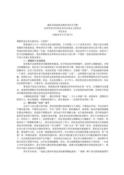 / 时令材料∣0423读书日:20230423最是书香能致远唯有读书方宁静——在世界读书日师生读书分享会上的发言