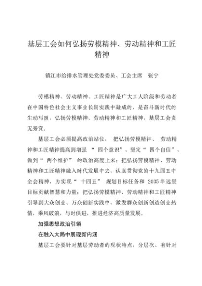 时令材料∣0501劳动节:20210730基层工会如何弘扬劳模精神、劳动精神和工匠精神——镇江市工会主席 张宁