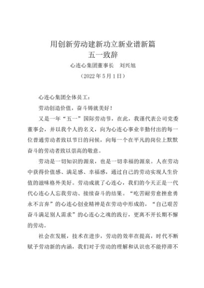 时令材料∣0501劳动节:20220501五一劳动节致辞——心连心集团董事长