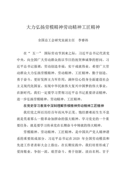/ 时令材料∣0501劳动节:20210503大力弘扬劳模精神劳动精神工匠精神——全国总工会研究室李睿祎