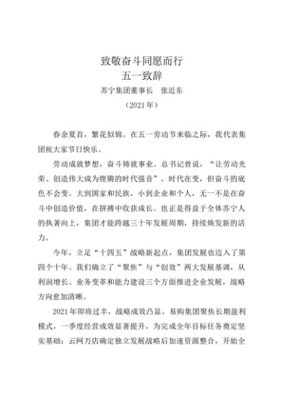 时令材料∣0501劳动节:20210501致敬奋斗同愿而行五一致辞——苏宁集团董事长 张近东