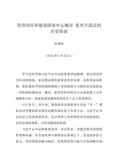 时令材料∣0501劳动节:20150526用劳动托举建设国家中心城市 复兴大武汉的历史伟业