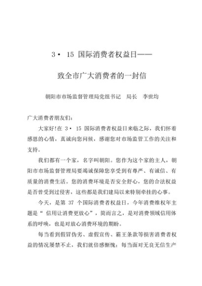 时令材料∣0315消费者日:20190315国际消费者权益日致全市广大消费者的一封信——朝阳市市场监督管理局局长 李世均