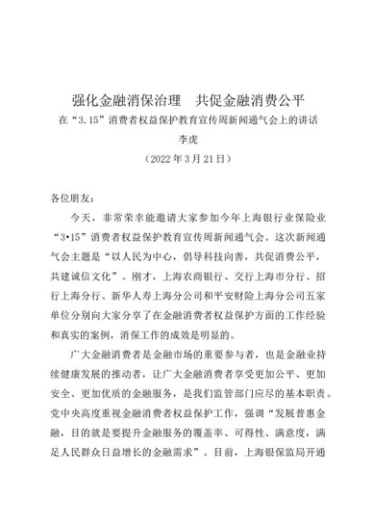 / 时令材料∣0315消费者日:20220321在消费者权益保护教育宣传周新闻通气会上的讲话——李虎