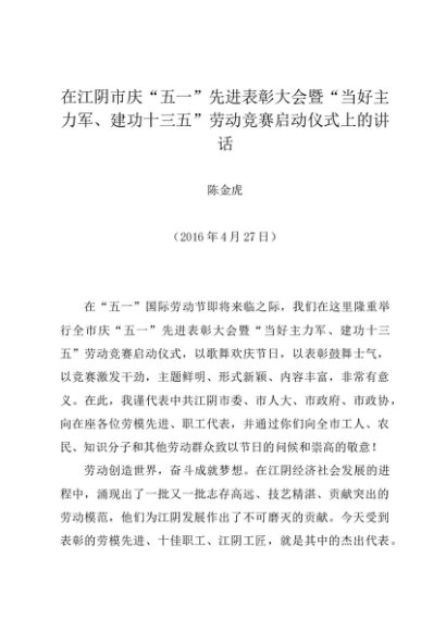 时令材料∣0501劳动节:20160427庆“五一”先进表彰大会暨“当好主力军、建功十三五”劳动竞赛启动仪式上的讲话(江阴市)