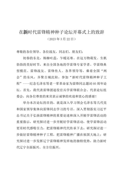 / 时令材料∣0305学雷锋:20230322在新时代雷锋精神种子论坛开幕式上的致辞——雷锋团退役官兵学雷锋联合会